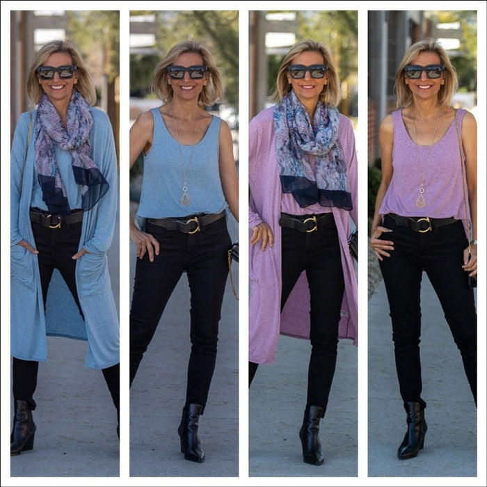 Blue And Lilac Cardigan And Tank Top Sets