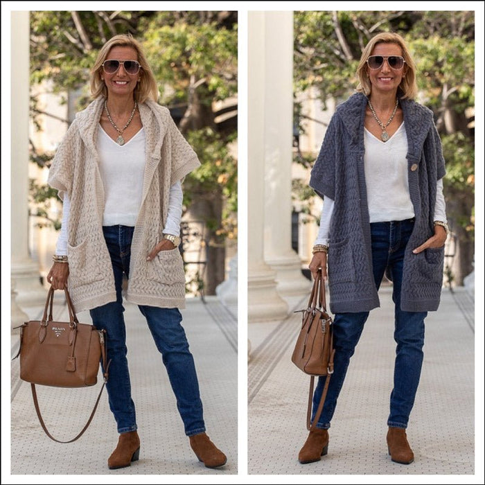 Two New Hooded Poncho Cardigan Vests