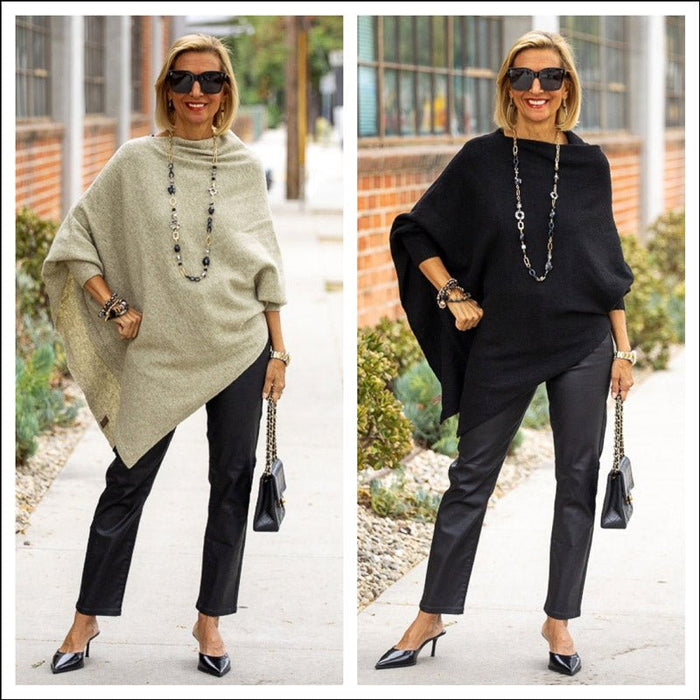 Restyling Our Stylish Sage And Black Ponchos With Sleeves