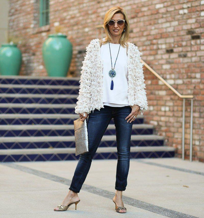 I am super excited to show you our brand new Grace fringe boucle jacket today which has everything I love and look for when shopping...