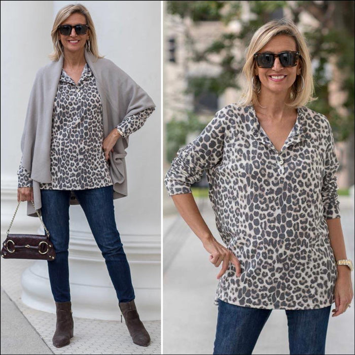 Our Putty Cape Vest Styled With A Leopard Top And Mask