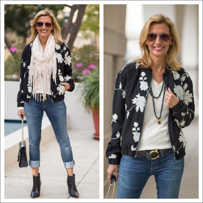 Trend Alert Embroidered Bomber Jacket And Fringe Snood