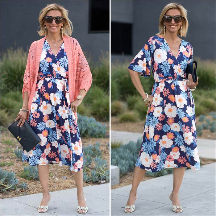 Ivory Floral Print Dress Styled With An Ivory Shrug