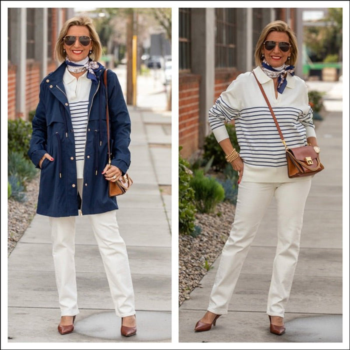 Nautical looks are a classic for spring and summer and I don’t know many women who do not like a good navy and white outfit....