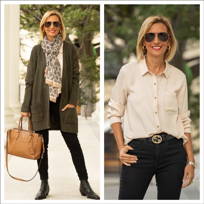 Ivory and black is a great neutral color combo for any season. One way to approach how you wear this color combo for each season...