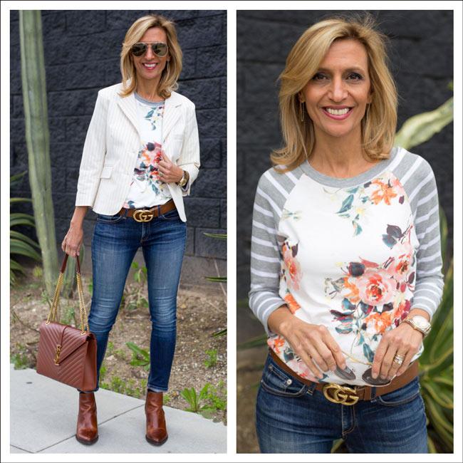 Today I am showing you another spring blazer look, this time combined with my black skinny jeans. Our Cream Gray Stripe One Button Blazer is...
