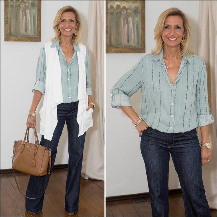 Two Stripe Shirts Styled With A Trendy Vest