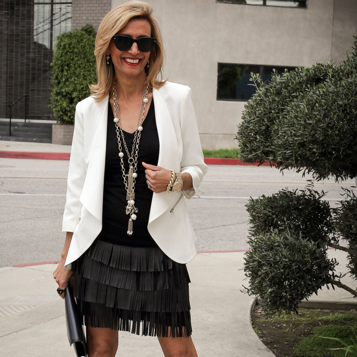 Our Stephanie Jacket Mixed With Leather Fringe And Pearls