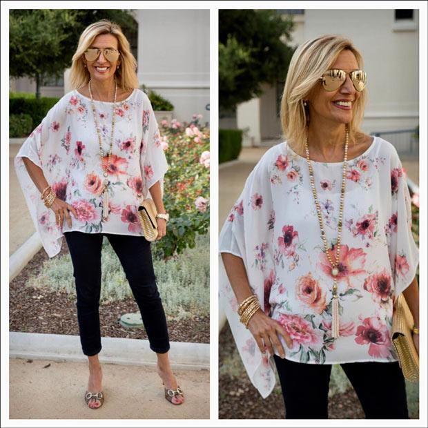 Date Night Wearing Our Garden Of Roses Poncho Blouse