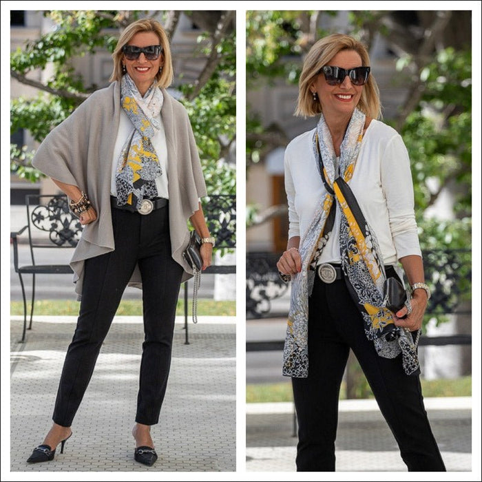 Our Best Selling Putty Cape Vest Meets A Beautiful Scarf