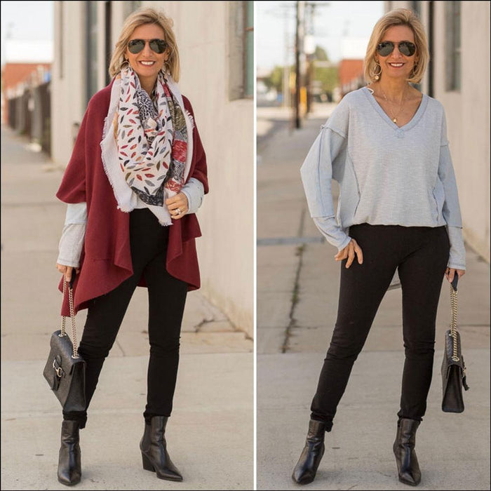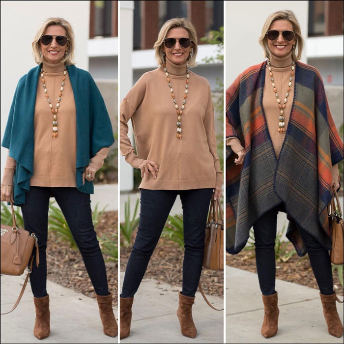 For today’s look I am very excited to introduce a new color addition to our bestselling cape vests. The color is Teal and it is...