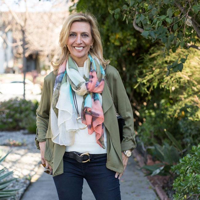 There are certain colors that work really well for transitional months. I believe one of these colors is olive or khaki. It’s one of those...