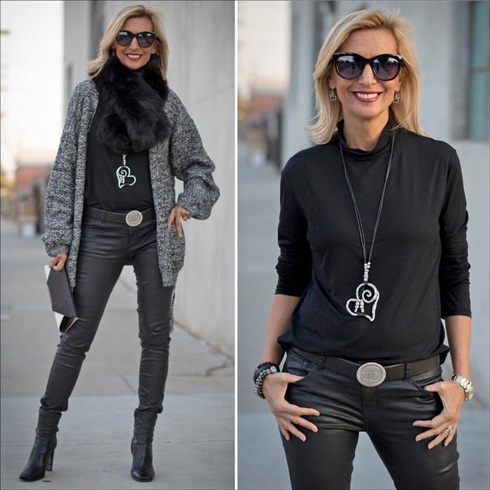 I am super excited to debut a brand new cardigan for you guys today. Introducing our Ivory Black Textured Knit Cardigan with Fringe, which is...