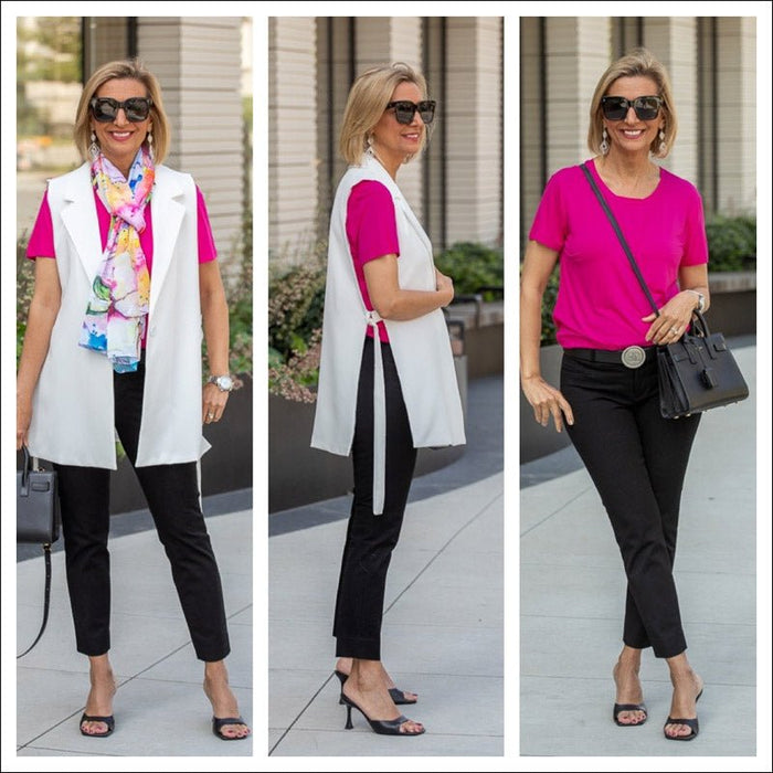 Back in February I debuted our chic and trendy Ivory notch collar open side vest, which is also available in Black. Your can see the...