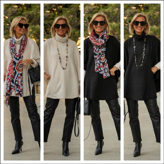 For today’s blog feature I have two new turtleneck ponchos to share with you in Natural and Black. These turtleneck ponchos are a stylish staple...