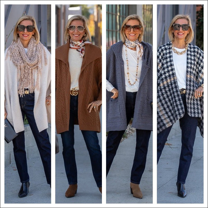 A Casual Yet Chic Look With Our Plaid Houndstooth Reversible Poncho